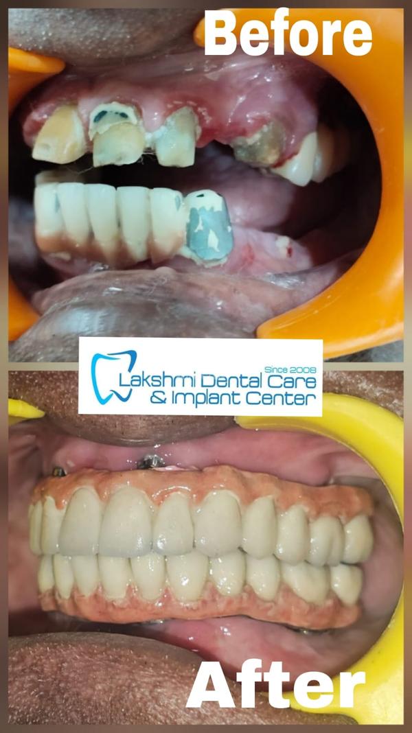 We at Lakshmi dental care, porur best dental practice with a consistent track record provide immediate replacement for one hundred percent when supported by CBCT guided implant placement . Our patients will leave the clinic with a full set of provisional replacements ( artificial teeth or immediate replacement ) after all on 6 or all on 4 implant surgery . We provide 3 D Printed resin temporaries that last for 3 to 4 months without any fracture. We provide permanant ceramic bridges or malo bridges after 3 months.